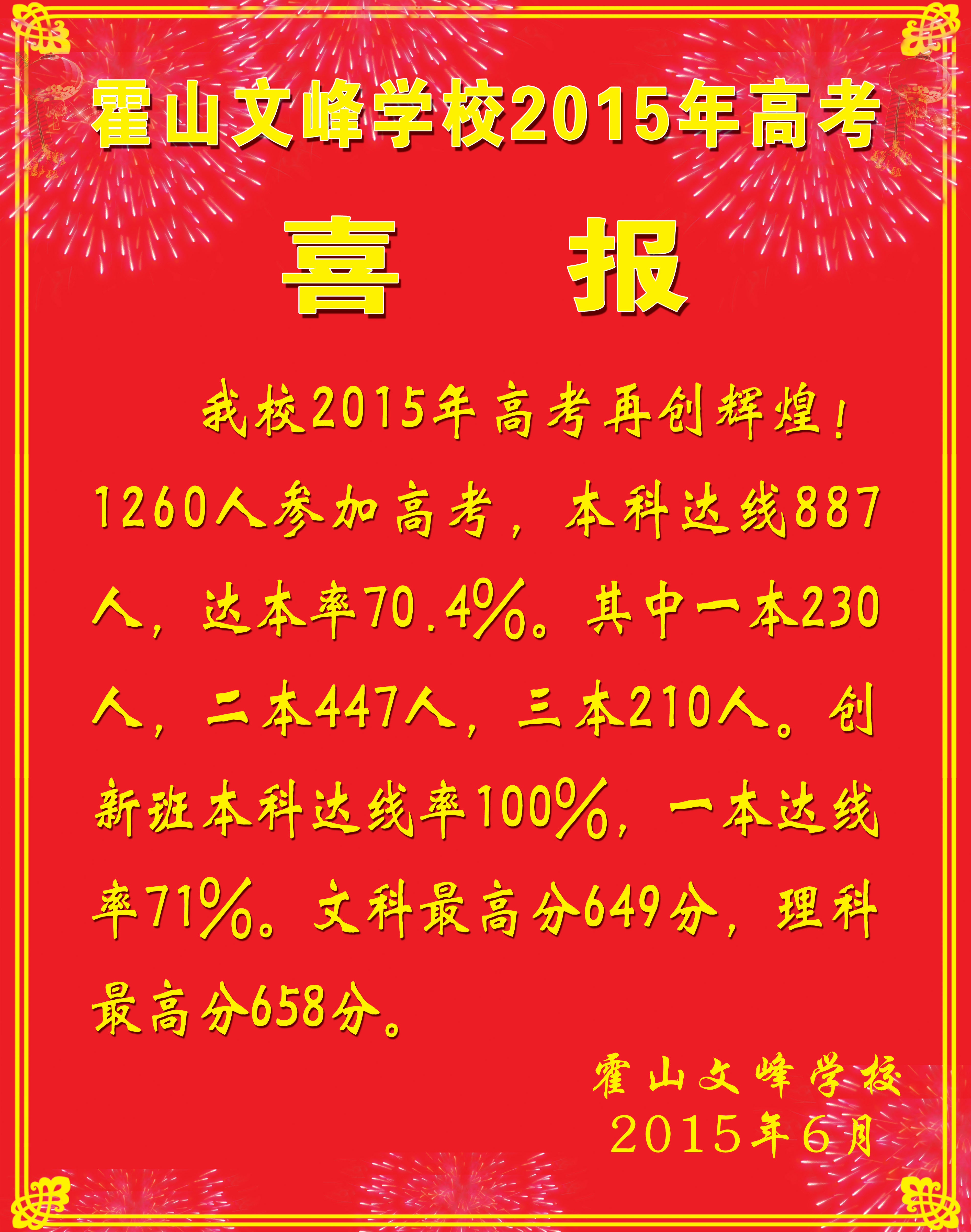 霍山文峰学校2015年高考喜报