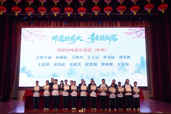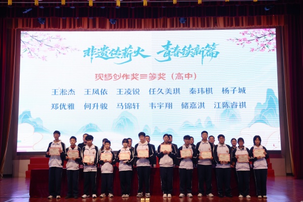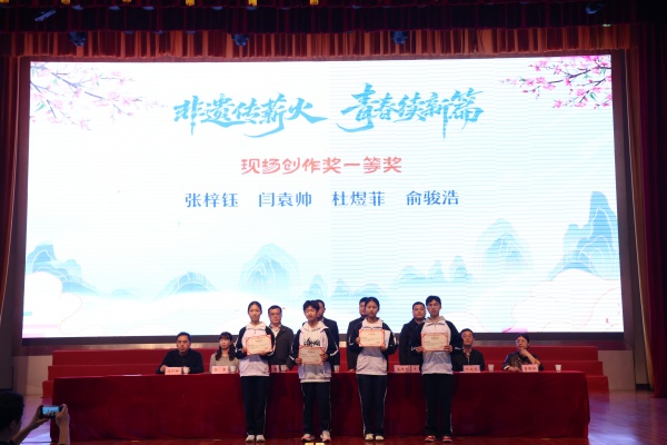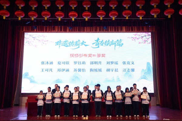 在欢欣喜悦的音乐中,与会领导为第十届原创诗联大赛、首届现场诗词创作比赛的获奖师生颁奖。今年的师生原创诗联大赛主题是“非遗传薪火,青春续新篇”。本届诗歌节先后开展两场创作比赛,共收到师生古诗词、现代诗和楹联稿件千余首,经过层层筛选、认真评选,共有216首作品获奖。师生们用真诚细腻之笔,让文字发芽,让意象开花,用奋进昂扬之笔,去触摸生活温度,去丈量梦想维度。