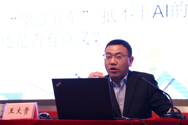 颁奖结束后,著名诗人、中国作家协会会员、六安市作协副主席王太贵带来一场《当青春遇上诗歌》的精彩讲座。王老师以“AI时代,我们是否还需要诗歌?”抛砖引玉、切入主题,随后围绕“青春必然要遇上诗歌;诗人的青春与诗歌;读诗的好处;阅读、写作有利于人的精神成长;全民阅读的升级和制度化;阅读和写作的意义”等方面深入浅出、娓娓叙来,为同学们带来一场滋养心灵的文化盛宴。