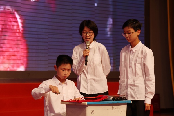 伴随着雄壮的国歌声,鲜艳的五星红旗冉冉升起,全体师生肃立,齐唱国歌、校歌。