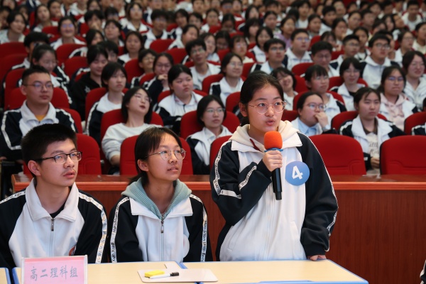 吴允富校长简要介绍了我校扎实推进校园诗教工作的举措与成效。他指出,诗歌节是文峰的品牌文化,也是校园诗教的重要载体。他要求同学们珍惜这次难得的学习机会,认真聆听讲座中丰沛的文学知识和人生感悟,让诗歌之炬点亮春天、照亮未来。最后,吴校长祝愿文峰学子在平仄里读懂热爱,在韵律中找到共鸣,在书香里沉淀底气,在笔墨间舒展胸襟,在逐梦途中书写最美的青春诗章!