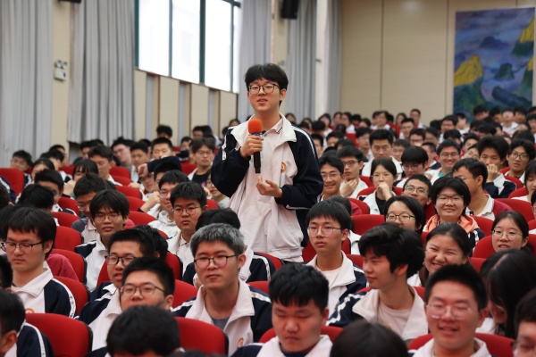 互动提问环节中,同学们踊跃举手、大胆提问,围绕专业选择、高校学习规划、职业发展方向等问题与陈超老师深入交流。陈老师不仅详细介绍了清华大学校园建设与安徽招生政策,更耐心细致地解答了同学们的困惑,为大家的成长之路指明了方向。