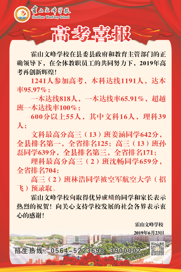霍山文峰学校2019年高考喜报