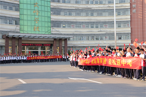 青衿逐梦,壮志酬筹。为给九年级考生鼓舞士气,传递温暖和勇气,自信从容地迎战中考,6月14日清晨,霍山文峰学校领导班子、全体教职员工,以及七、八年级师生有序地排成长龙,翘首以待,为即将奔赴考场的2023届九年级学子壮行送考。