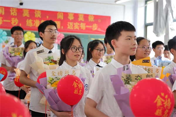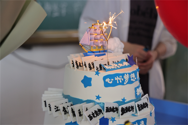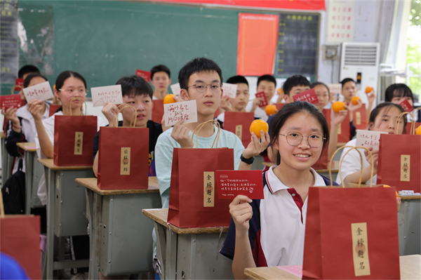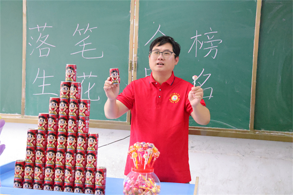 为了缓解考生们的考前焦虑,各班考前助力活动可谓别出心裁,创意满满。教室里,班主任叮嘱考生们要沉着冷静,以最佳的状态去应考,并为孩子们送去祝福:插满师生姓名的大蛋糕,写满祝福的心愿卡,寓意美好的幸运手环、棒棒糖、旺仔牛奶、吉祥橙,糕粽,向日葵……师生之间微笑、击掌、拥抱,相互传递着信心、默契与能量,画面温馨感人。