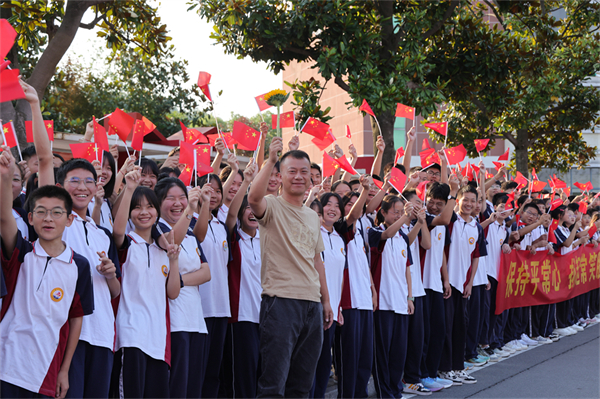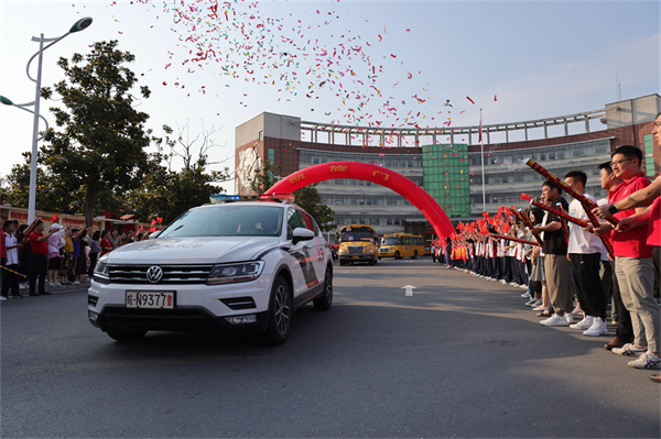 7时16分,在警车的引领和护送下,一辆辆送考车徐徐驶出校门。迎风飘扬的国旗,醒目的凯旋门、挥舞的小红旗、祝福横幅、红色送考衣,校园里涌动着一片红色的海洋。愿这绚丽的“文峰红”赋予2023届文峰学子信心与能量,考出最优异的中考成绩。礼花缤纷,呐喊震天,校领导挥手致意,送考长龙目送着浩荡的送考车队一路迎着晨曦、奔赴考场……