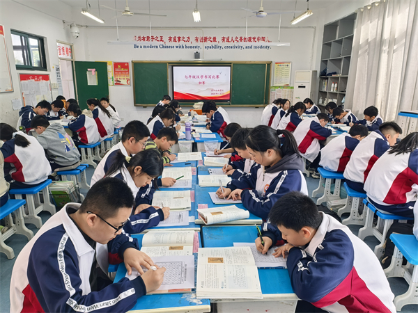 为大力传承中华优秀传统文化,全面提升学生汉字书写能力与文化素养,近日,霍山文峰学校七年级精心筹备并组织了汉字书写比赛。此次活动分为班级初赛与年级决赛两个阶段,有序推进,吸引了全体七年级学生踊跃参与,充分展现了学生们良好的书写风貌与良好的文化底蕴。