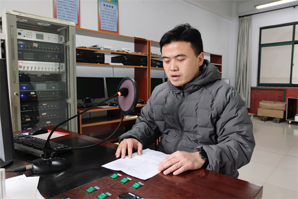 12 月 4 日上午大课间,一场庄重而富有意义的“学宪法,讲宪法”广播会拉开帷幕。高中部政治教研组组长沈旭作为领读人,带领同学们诵读宪法条文。各班级内,同学们神情专注,跟随着领读声认真诵读。朗朗读书声在校园内回荡,让宪法知识在诵读中深入人心,进一步强化了师生对宪法的尊崇。