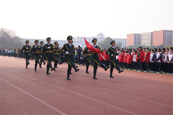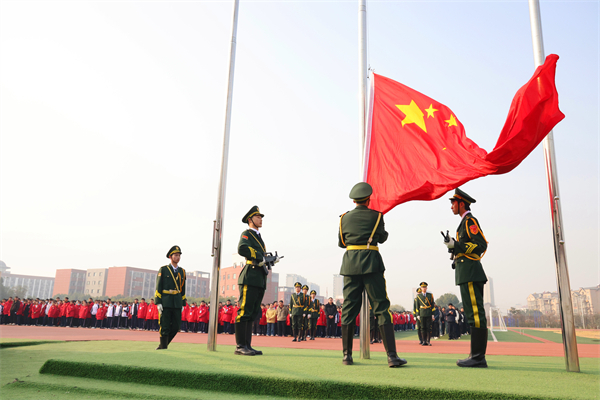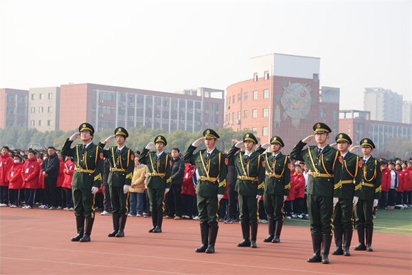 12 月 8 日上午,“尊崇宪法精神 争做守法少年”主题升旗仪式在校田径运动场隆重举行。在激昂的国歌声中,鲜艳的五星红旗冉冉升起。九年级部副主任刘飞作主题讲话,强调了宪法作为国家根本大法的重要地位和作用,鼓励学生积极学习宪法知识,自觉遵守宪法规定,将宪法精神融入到日常学习和生活中。